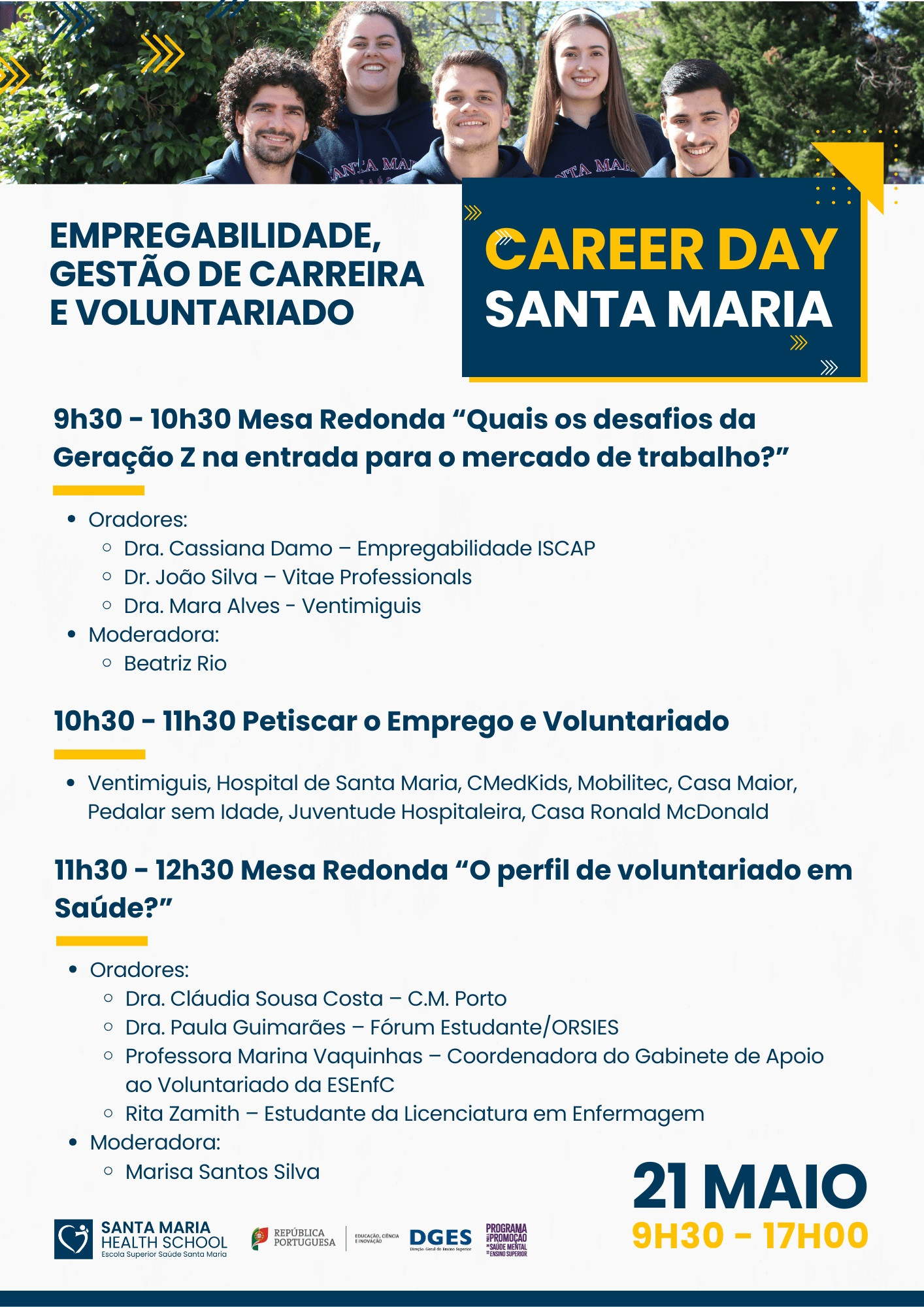 O Gabinete de Apoio ao Voluntariado estará presente no evento Career Day, promovido pelo Santa Maria Health School