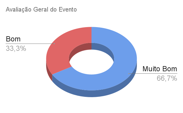 Avaliação feita ao evento em geral foi muito positiva, conforme se pode ver no gráfico abaixo.