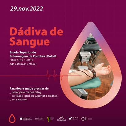 No próximo dia 29 de novembro pode contribuir e doar sangue nas instalações da ESEnfC.