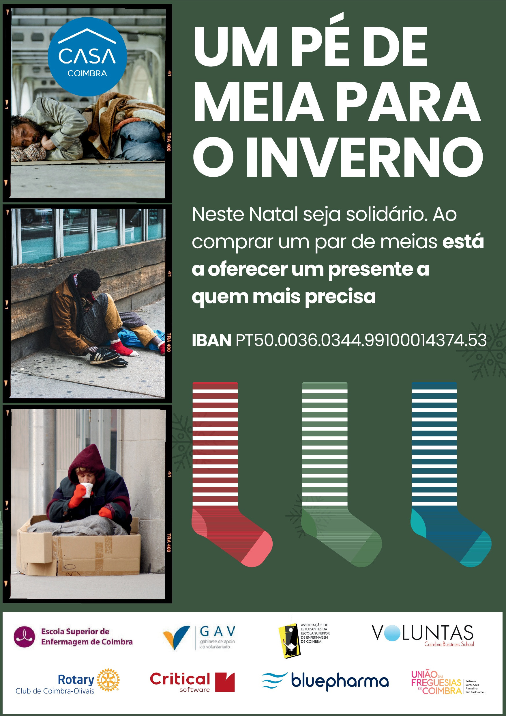 Com a ajuda de toda a comunidade escolar foi possível doar 130 pares de meias ao Centro de Apoio aos Sem Abrigo de Coimbra (CASA).
