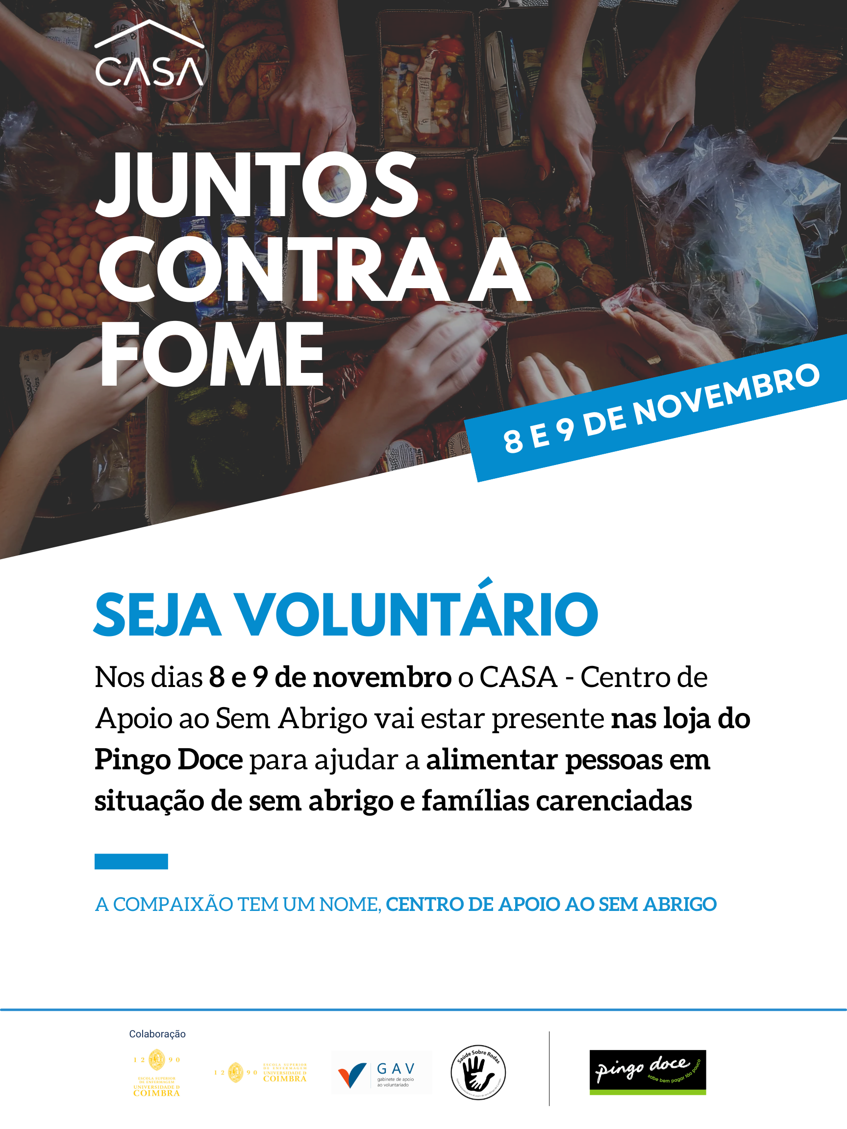 Participe nesta iniciativa como voluntário/a do CASA - Centro de Apoio ao Sem Abrigo. Faça a sua inscrição ou participe com um bem alimentar.