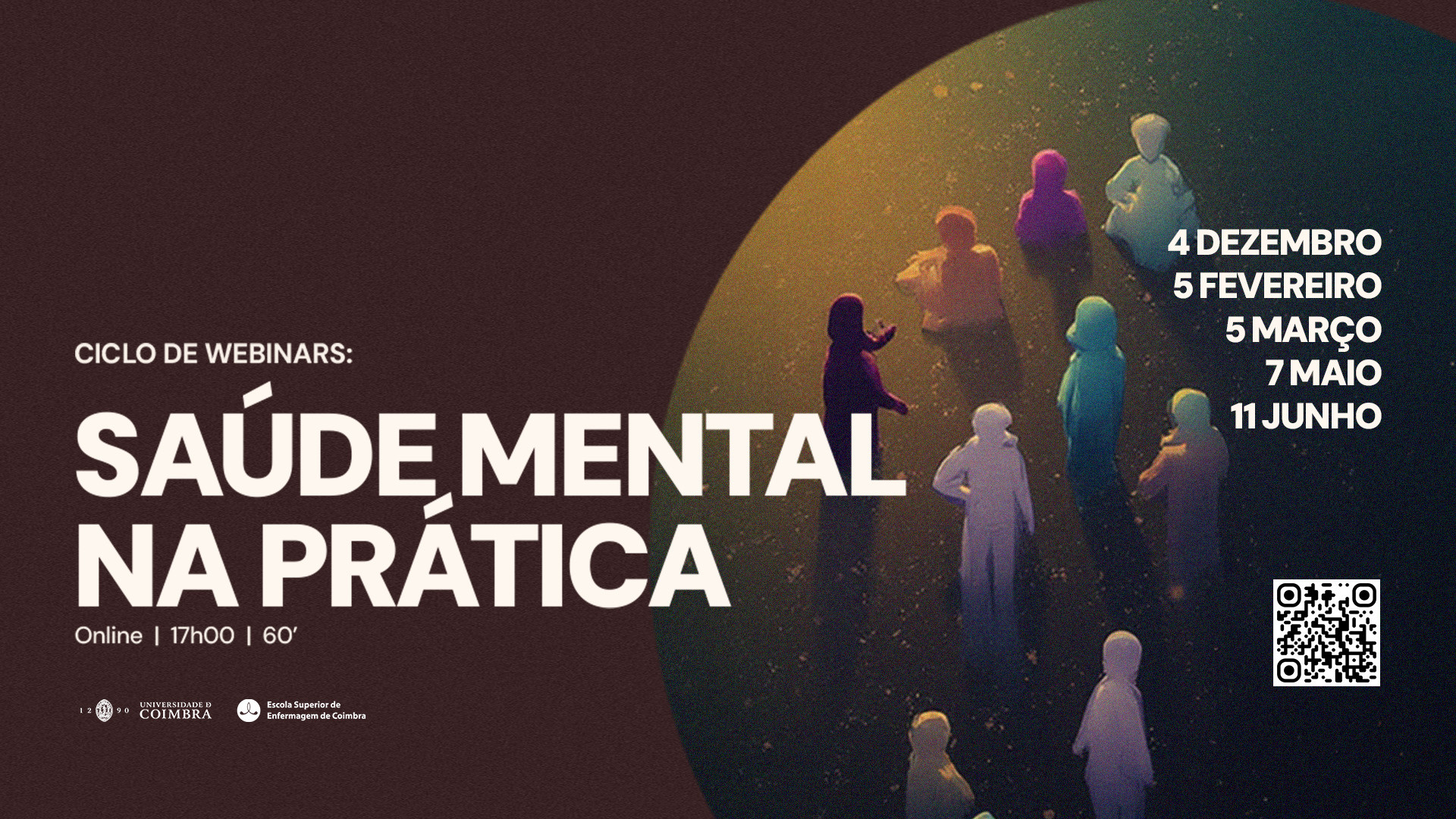 No âmbito do projeto S2ES@Coimbra (s2es@esenfc.pt), está a ser dinamizado um ciclo de webinars intitulado: “Saúde Mental na Prática” que inclui uma série de 5 webinars online (via Microsoft Teams) de inscrição gratuita dirigida a toda a comunidade académica da ESEUC, com estratégias aplicáveis no dia a dia académico e pessoal.