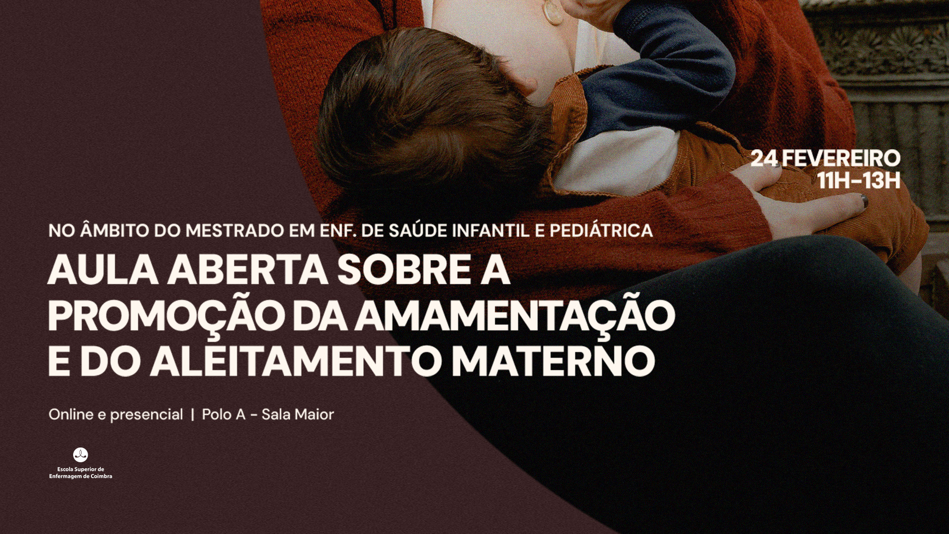 A ESEnfC organiza, no próximo dia 24 de fevereiro, uma aula aberta sobre "Promoção da Amamentação e do Aleitamento Materno”, na qual se analisará, também, a prevenção dos problemas mais comuns no estabelecimento e na manutenção da amamentação.