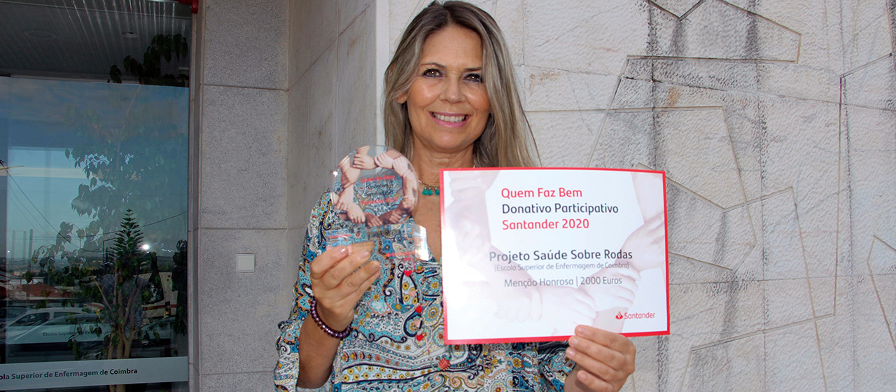O projeto “Saúde sobre Rodas - apoio à população em situação de sem-abrigo de Coimbra”, desenvolvido pela Escola Superior de Enfermagem de Coimbra (ESEnfC) em parceria com a Associação Integrar (instituição particular de solidariedade social sediada em Coimbra), foi um de 11 projetos distinguidos com menções honrosas e um apoio financeiro de 2.000 euros, no âmbito da terceira edição do “Quem Faz Bem – Donativo Participativo”, do Banco Santander.