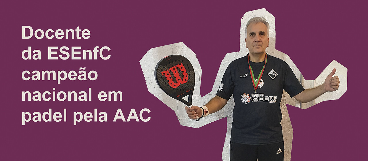 Chama-se Paulo Alexandre Ferreira, desde os 16 anos de idade que pratica ténis, é professor da Escola Superior de Enfermagem de Coimbra (ESEnfC) e, no final de 2021, já com 57 primaveras, sagrou-se campeão nacional de padel (jogo disputado entre duas duplas, também com raquetes) pela Associação Académica de Coimbra (AAC - Secção de Padel), em M5.