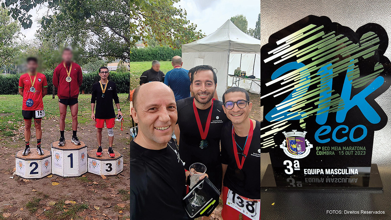 O trio da equipa de atletismo da Escola Superior de Enfermagem de Coimbra (ESEnfC), Hugo Neves, Vitor Parola e Rafael Bernardes, obteve o 3º lugar por equipas masculinas na 6ª Eco Meia-Maratona Coimbra, realizada no dia 15 de outubro, nos campos do Mondego.
