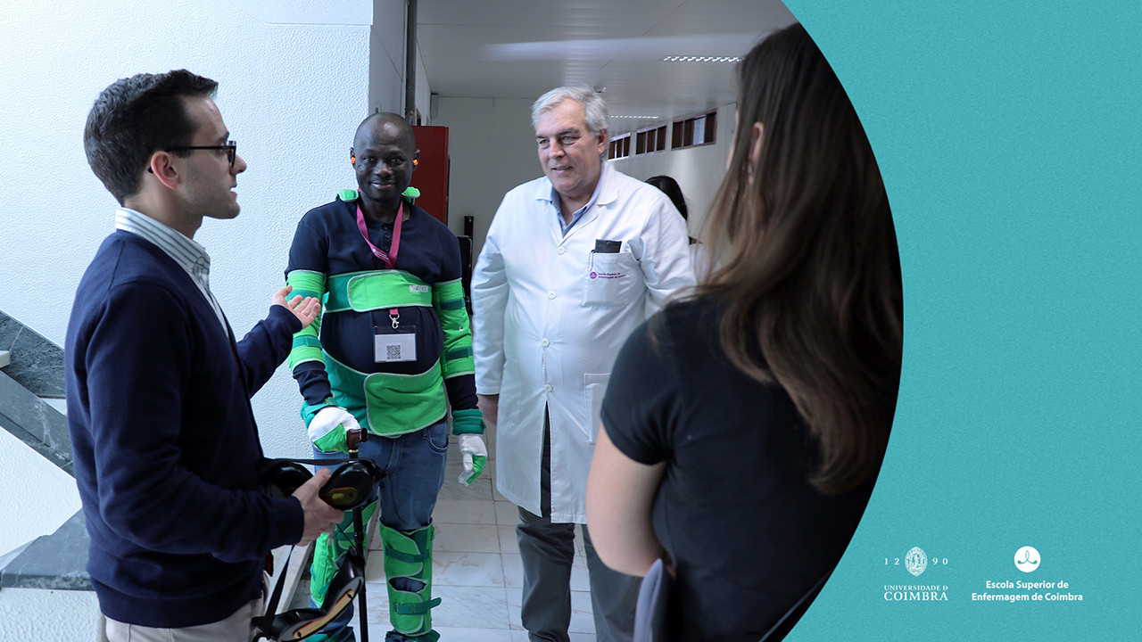 «Ao contrário dos fatos de simulação atualmente existentes, que recorrem sobretudo a pesos e restrições mecânicas estáticas», o projeto apresentado ao concurso, por cinco docentes e investigadores da ESEUC – Alberto Barata, Isabel Gil, Paulo Costa (promotor principal), Maria de Lurdes Almeida (atualmente aposentada, mas uma das principais impulsionadoras da ideia) e Pedro Parreira –, «foi desenhado para permitir modulação graduável e mensurável de limitações a nível funcional, aproximando-se de padrões fisiológicos reais do envelhecimento».