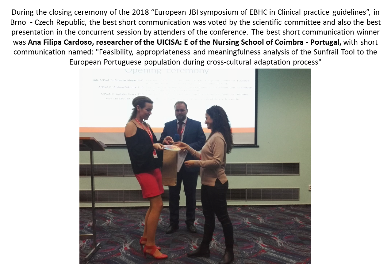 Prémio melhor póster no simpósio europeu do Joanna Briggs Collaboration - Daniela Cardoso - 2017