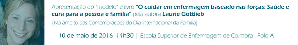 Neste âmbito, a ESEnfC e a UCP Enfermagem de Saúde Publica, Familiar e Comunitária convidam a todos a estarem presentes na apresentação do livro “O cuidar em enfermagem baseado nas forças: Saúde e cura para a pessoa e família”, da Professora Laurie Gottlieb, que nos orienta para uma filosofia de enfermagem centrada nas forças da pessoa e família, capacitando-a para garantir a saúde e o bem-estar da família.