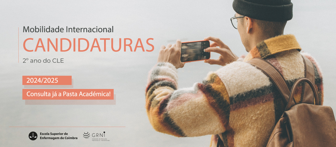 Está aberto, de 9 a 25 de fevereiro de 2024, o período de candidaturas para realização de mobilidade (programas Erasmus +, Brasil e México) por parte de estudantes do 1º ciclo de estudos em Enfermagem da ESEnfC, durante o 5º e 6º semestre do ano letivo de 2024-2025.