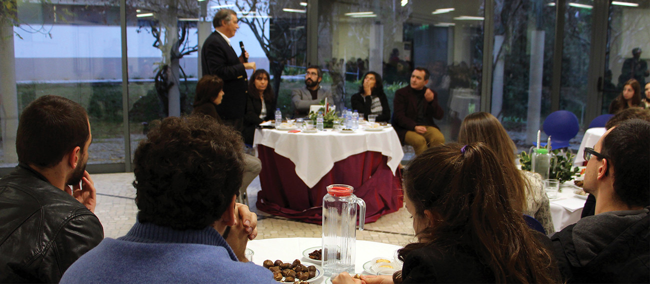 Dezenas de estudantes e docentes reuniram-se, à tarde, no bar do Polo B da ESEnfC (em S. Martinho do Bispo), para a tertúlia, de acesso livre, que foi organizada pelo Centro Colaborador da Organização Mundial de Saúde (OMS) para a Prática e Investigação em Enfermagem e pelo Capítulo Phi Xi da Sigma Theta Tau International - Honor Society of Nursing, sediados na ESEnfC e coordenados, respetivamente, pelas professoras Ananda Maria Fernandes e Aida Cruz Mendes.
