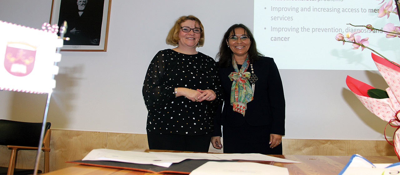 Assinaram o protocolo Maria da Conceição Bento (Presidente da ESEnfC) e Carolyn Morrice (Chief Nurse do Buckinghamshire Healthcare Trust).