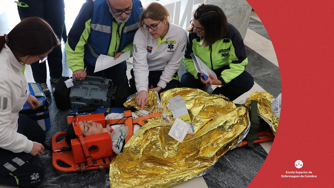 Uma explosão numa sala de laboratório e o desabamento do teto de um auditório foram os cenários escolhidos por duas dezenas de estudantes de mestrado da Escola Superior de Enfermagem de Coimbra (ESEnfC) e cerca de 40 enfermeiros do Instituto Nacional de Emergência Médica (INEM) para uma formação conjunta, com recurso a cenários de simulação, realizada no dia 6 de fevereiro.